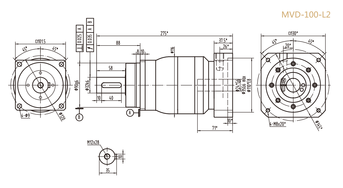 MVD-100-L2系列精密行星減速器型號尺寸與圖紙