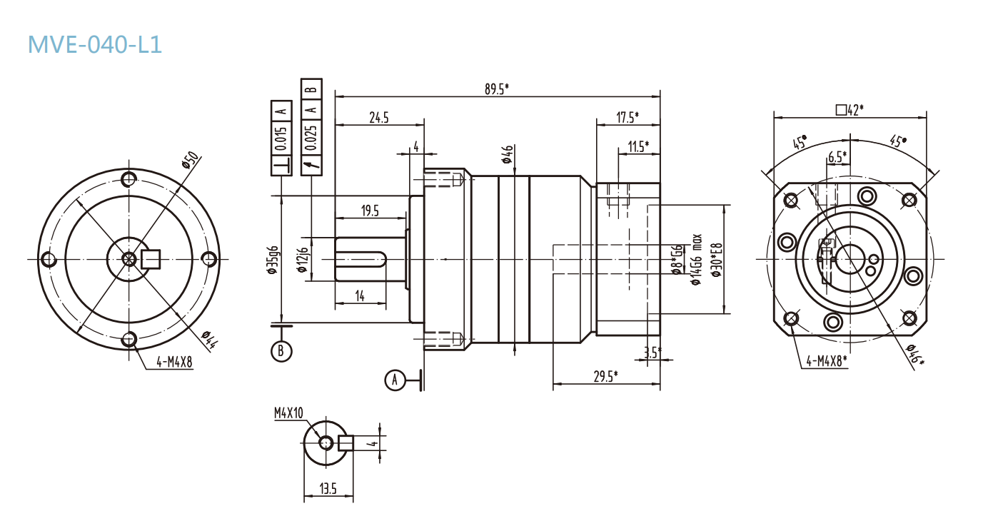 MVE-040-L1系列精密行星減速器型號尺寸與圖紙