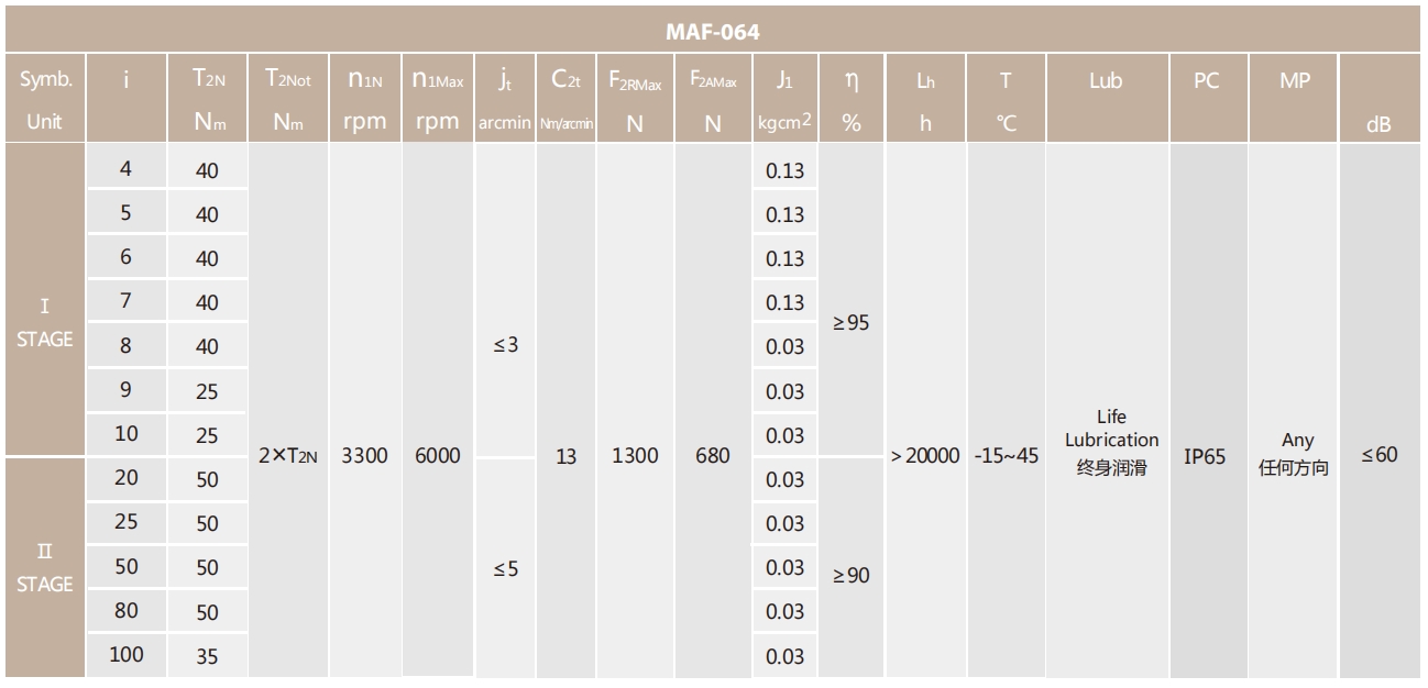 MAF-064-L1系列超精密背隙行星減速機(jī)系列(P0): MAF-064-L1系列精密背隙行星減速器系列(P1): MAF-064-L1系列標(biāo)準(zhǔn)背隙行星減速機(jī)系列(P2):