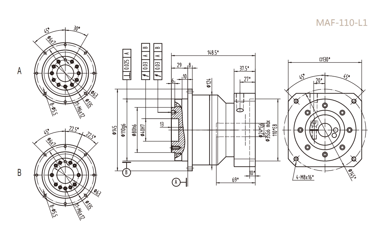 MAF-110-L1系列精密行星減速器型號(hào)尺寸與圖紙