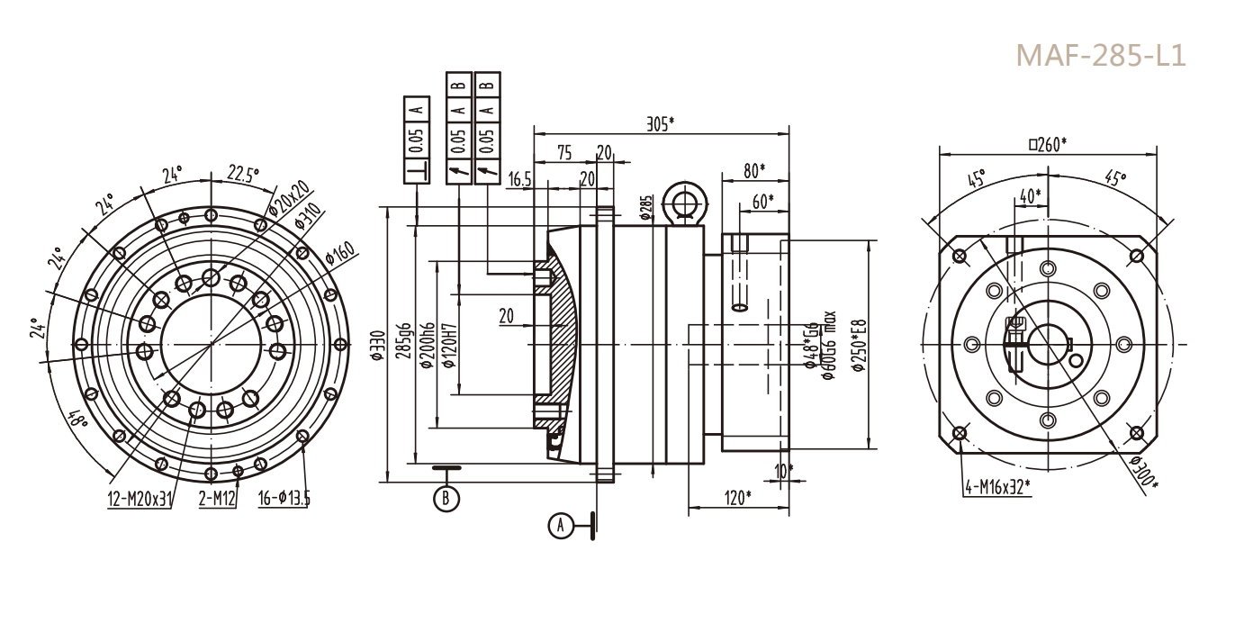 MAF-285-L1系列精密行星減速器型號尺寸與圖紙